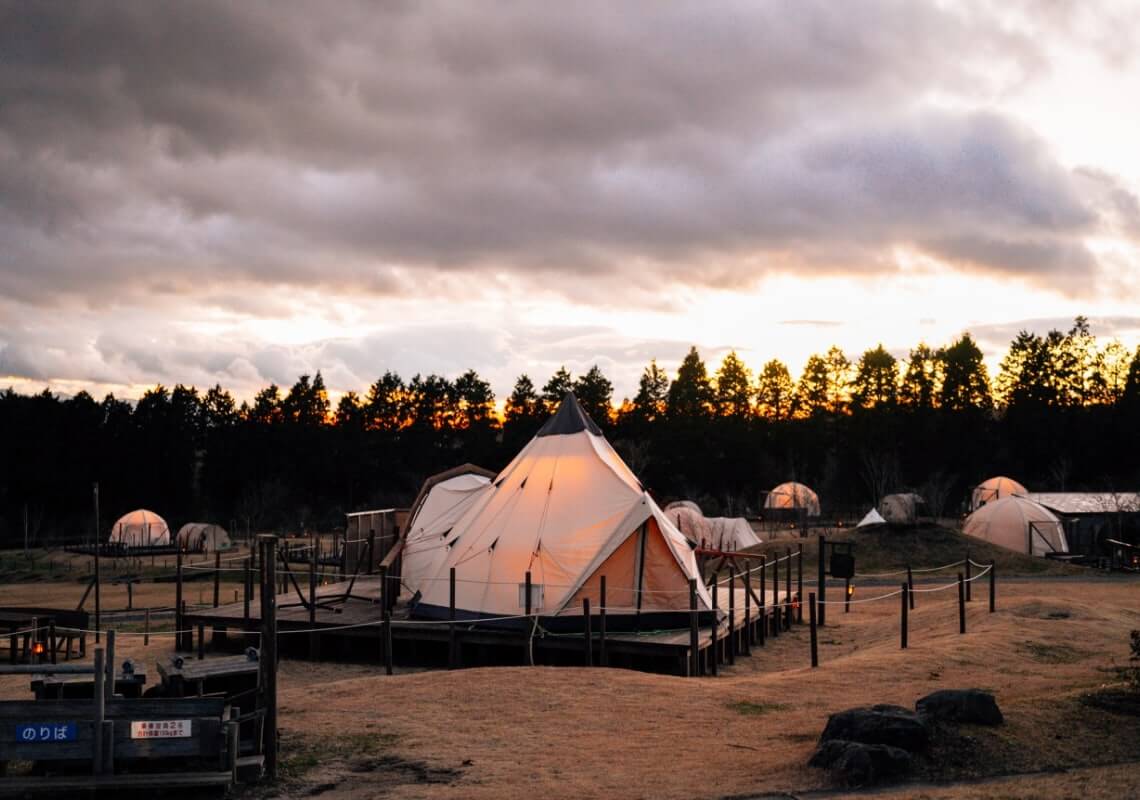 宿泊するお宿は、『Camping resort くじゅう花公園 花と星』。ここでは美しい星空を眺めながら、おしゃれなグランピング施設に泊まることができます。夕飯は豪華なBBQ! 地元の美味しいものをたっぷりと頂けるBBQは、春夏はもちろん、秋冬も大人気! テントの中は暖房設備も完備されているので、暖かく過ごすことができますよ。