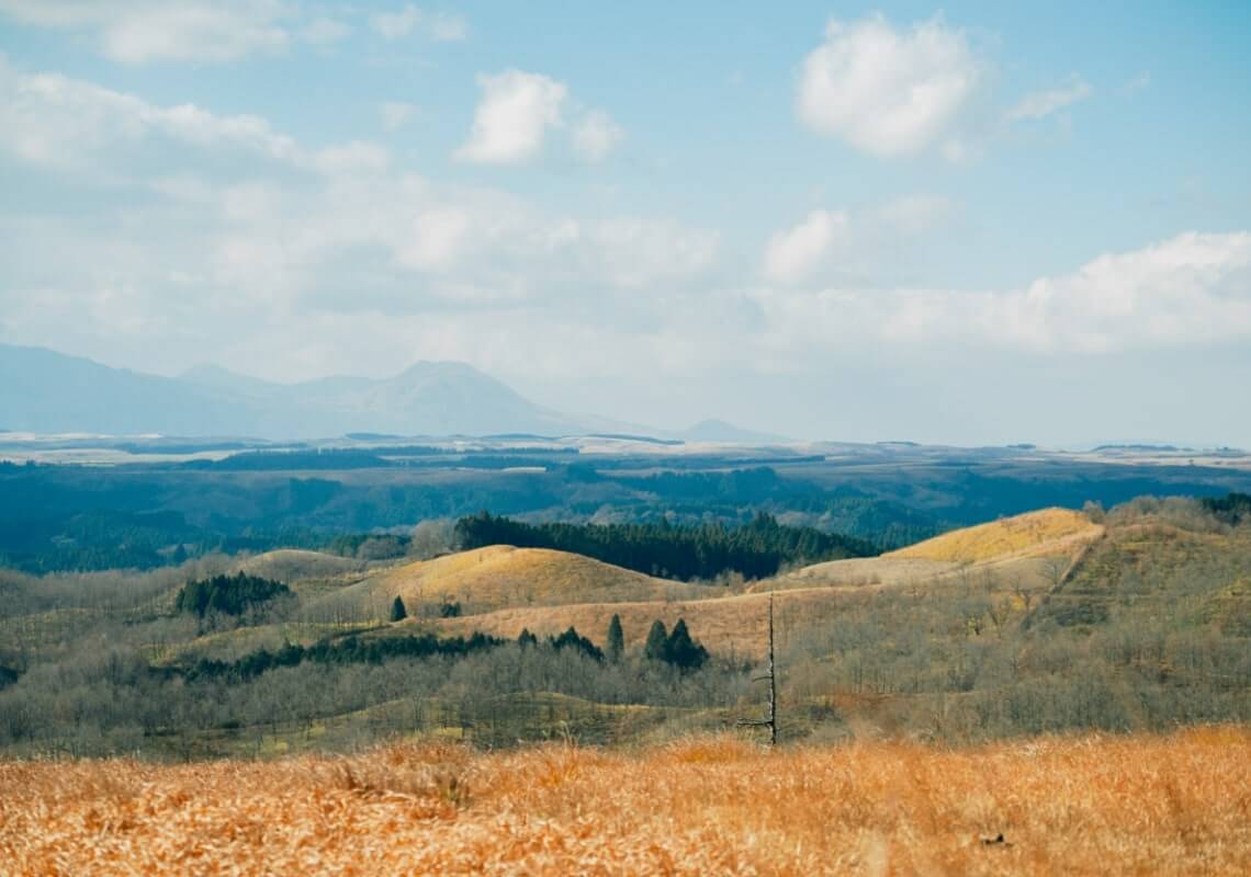 阿蘇くじゅう国立公園にある『久住高原』、その高原にある『久住高原オートビレッジ』は360度大パノラマが望める場所!手前には低い山が連なって、なんだか外国の風景のよう。訪れる季節によって印象が変わるので、いつ来ても写真撮影が楽しい場所です。