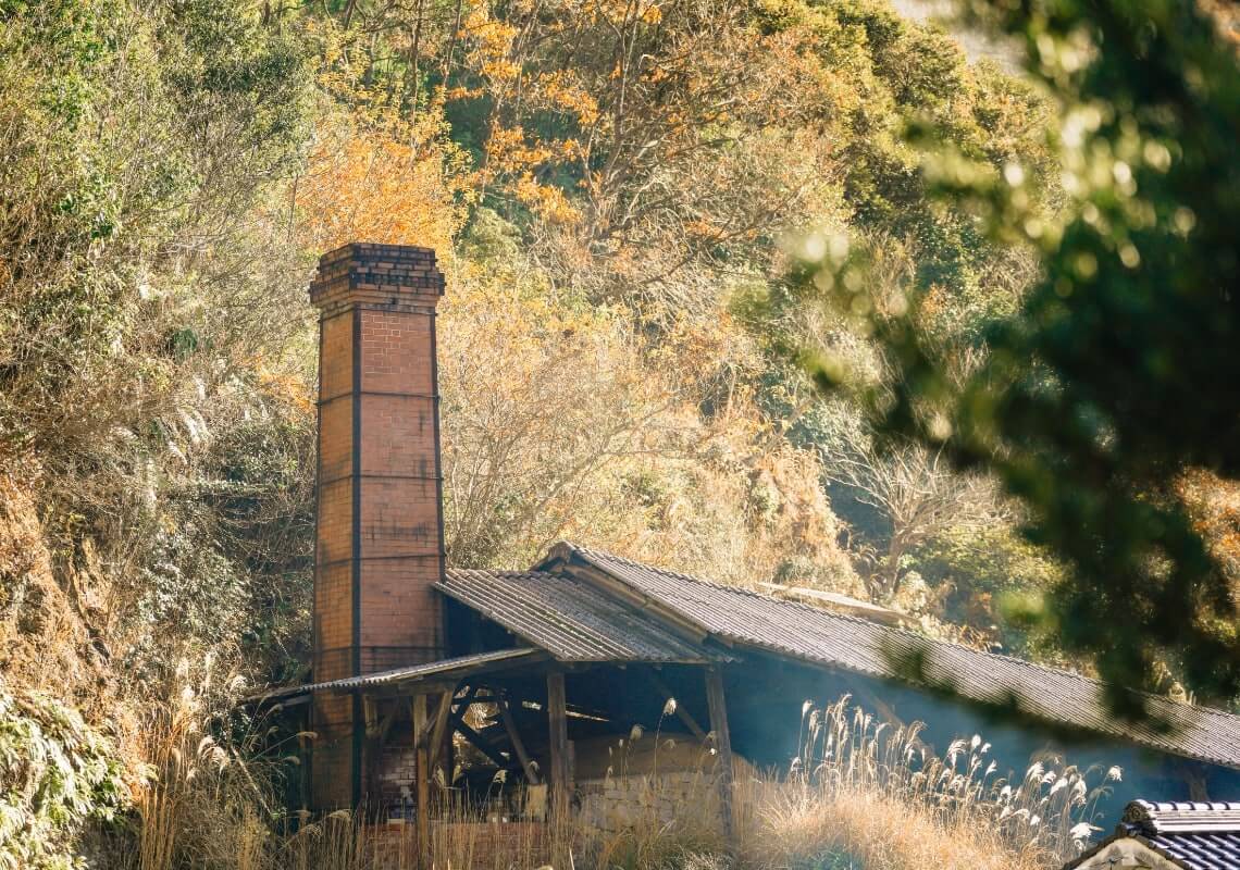 山あいに九軒の窯元が建ち並んでいて、川の水力で陶土を挽く『唐臼(からうす)』の音が響いています。