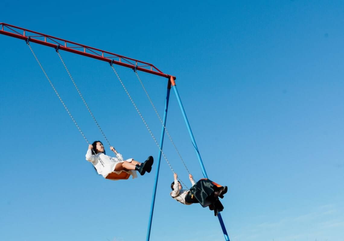 通称「ハイジ ブランコ」と呼ばれている、高さが4.5mもある巨大なブランコがある伐株山(きりかぶさん)!切り取り方で、まるで空に飛び出しているように写すことができますよ。