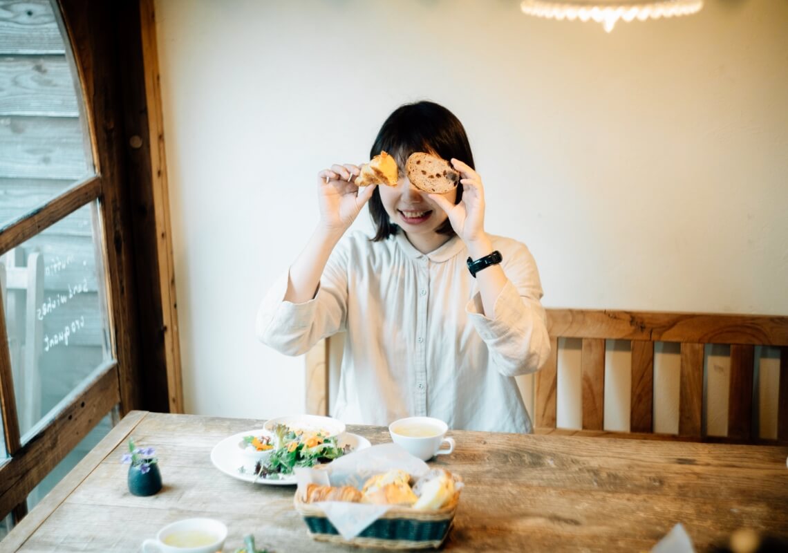 オーナー夫婦がリノベーションしたお店で、照明や椅子などはヨーロッパアンティークを使っているそう。独自の天然酵母や厳選された地元の素材を使って、丁寧に作ったパンや焼き菓子、ケーキがたくさん並んでいます。『やまカフェ』では旬の地元野菜をふんだんに使ったランチやドリンクを楽しめ、窓からは四季折々の豊かな自然も満喫できます!