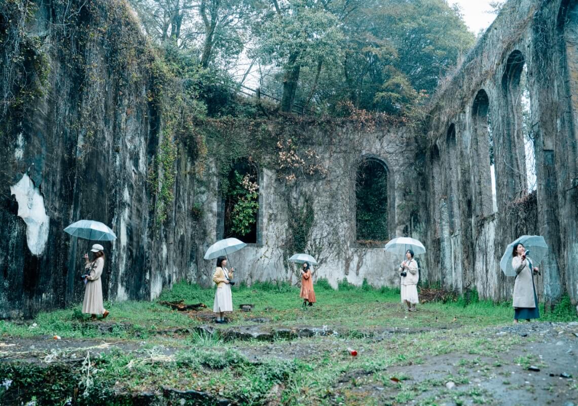 鉄道や町などへの電力供給のために建設された発電所の跡です。沈堕(ちんだ)の滝の落差を利用した石造りの水力発電所は廃墟のように一部が残っていて、蔦の絡まる姿はジブリの映画に出てくるようで神秘的。連なるアーチの窓がポートレート撮影にも似合いそうです。