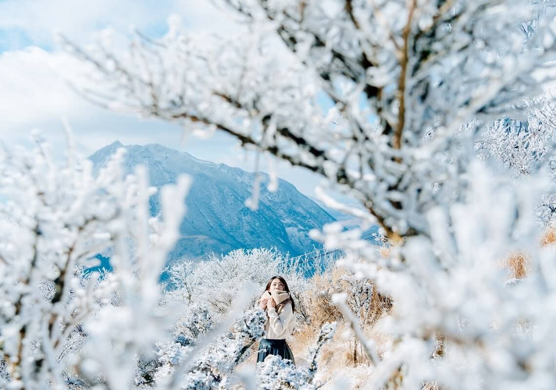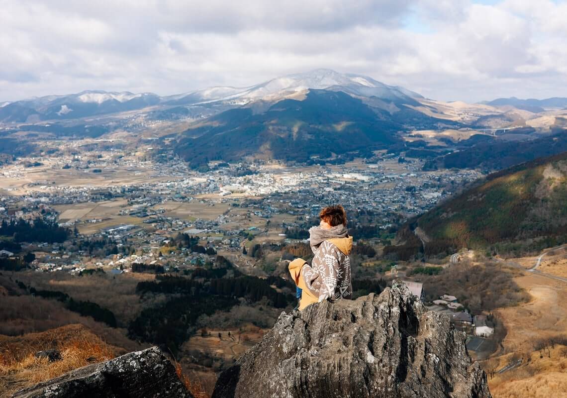 標高1,375mの鶴見岳は、九州最大級の101名乗りの大型ゴンドラ『別府ロープウェイ』を使って約10分ほどで上がることができます。ゴンドラの窓からは、別府の町並みや別府湾が一望でき、遠くは四国まで肉眼で見えます。また、南西側には九州アルプス・九重連峰まで見えちゃうんです!そして冬は木に白い花が咲いたような「霧氷」を見ることができますよ。