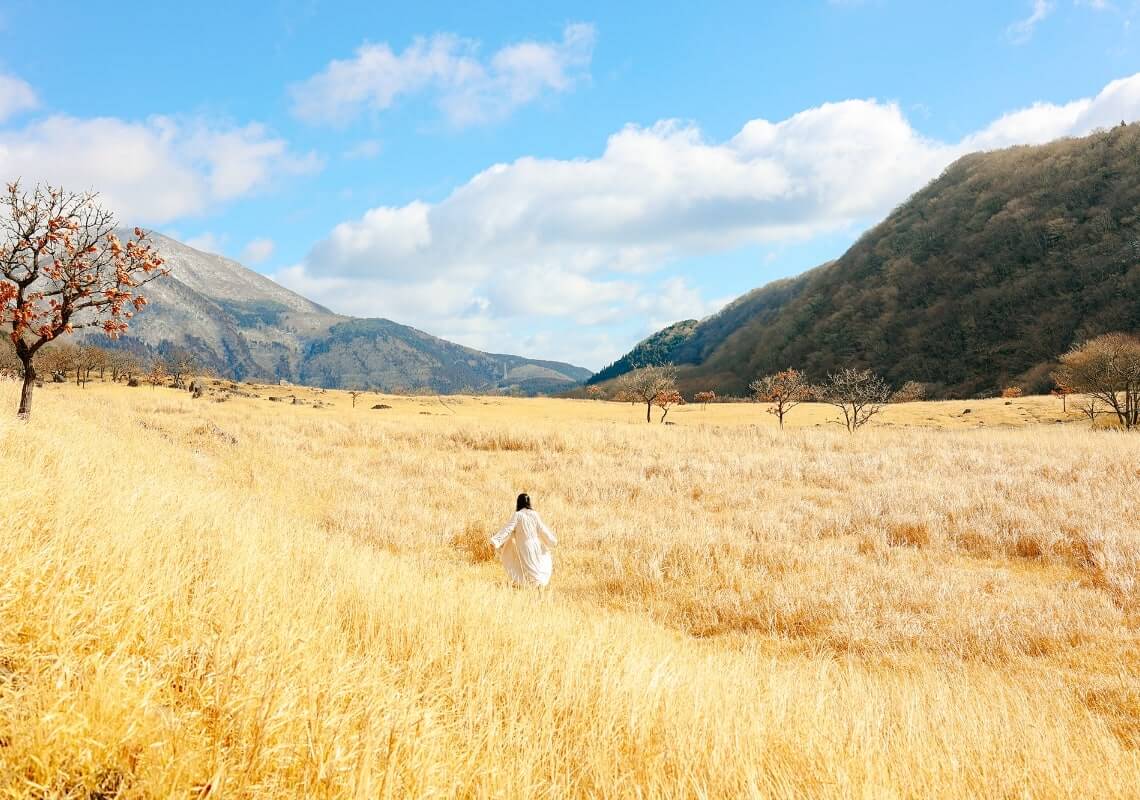 標高約680mの高さから由布院の町並みが一望できる展望スポット。展望台は由布岳に囲まれていて、四季それぞれに変わる景色はとっても綺麗です。山と空と緑と鮮やかな色が美しい春や夏、金色のススキが揺れる秋、雪景色の冬といつ来ても由布院の景色を楽しめます。特に晩秋の早朝は「狭霧」という名のとおり、幻想的な朝霧が見れることも!