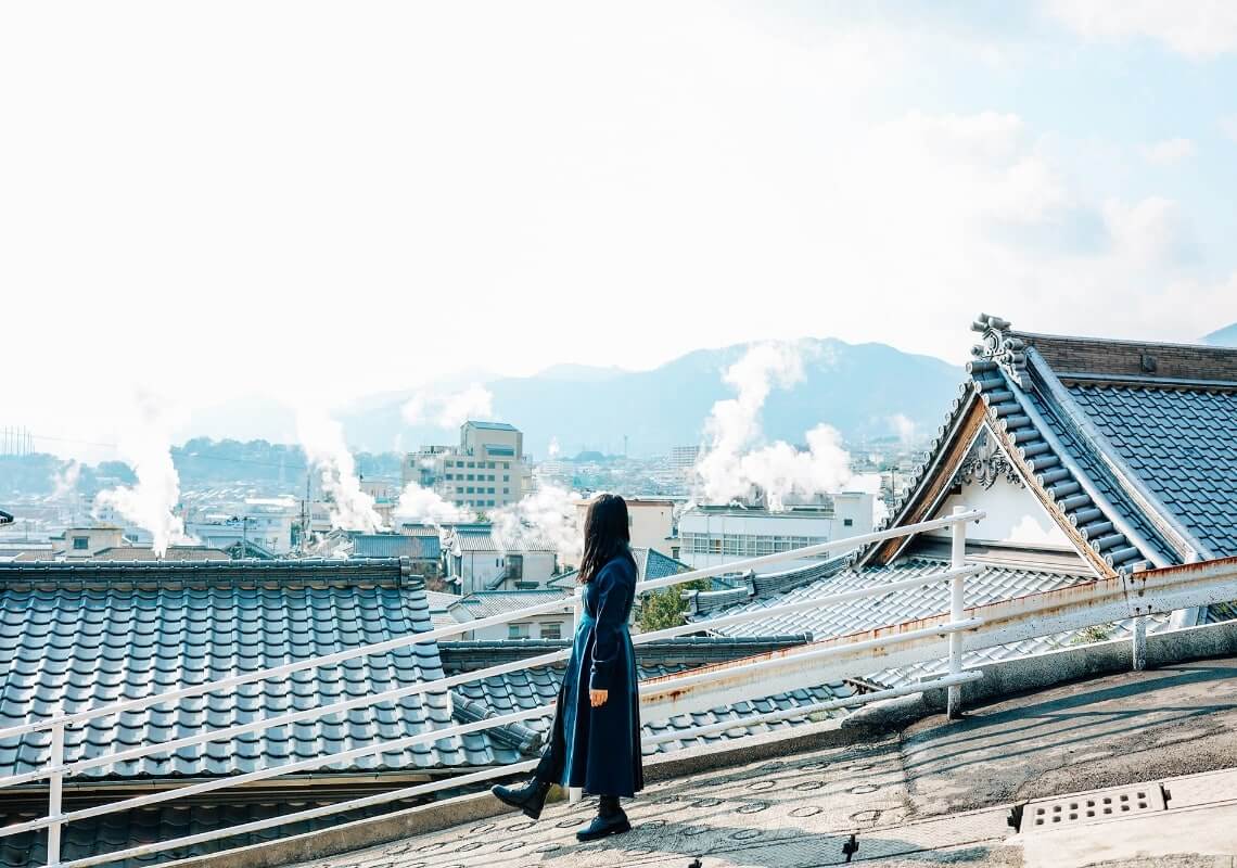 みはらし坂からは湯気が立ち上る、鉄輪温泉街を一望することができます。