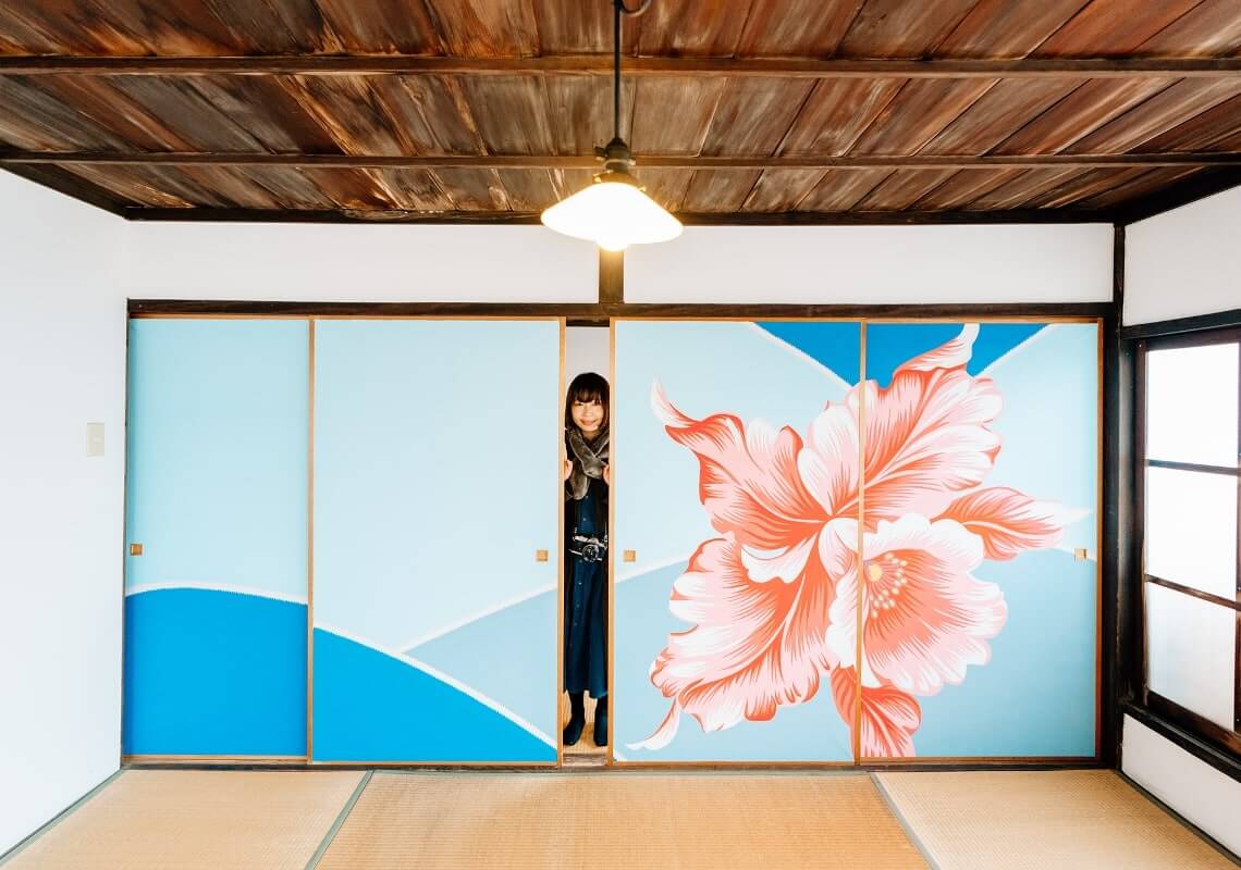 日常にお気に入りのアートやクラフトを取り入れることで、毎日を豊かに過ごすための空間づくりを提案している『SELECT BEPPU』。築100年を越える長屋の1階がセレクトショップで、2階には伝統的な台湾テキスタイルのパターンを借りてペインティングをする、マイケル・リンの襖絵が展示されているので必見です!