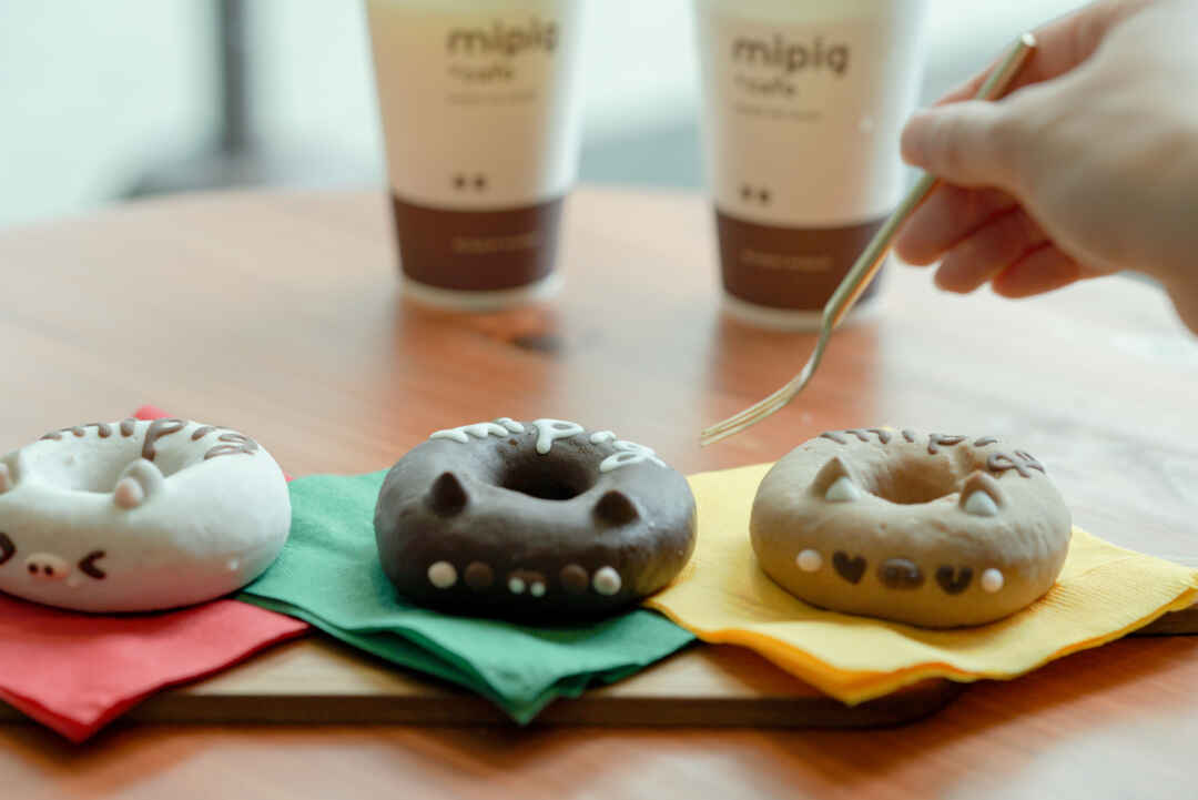 マイクロブタさんとの触れ合いだけでなく、スイーツやドリンクも注文ができます! ドーナツもしっかりブタさん仕様。見た目も可愛いですが、味もバッチリ美味しかったです◎