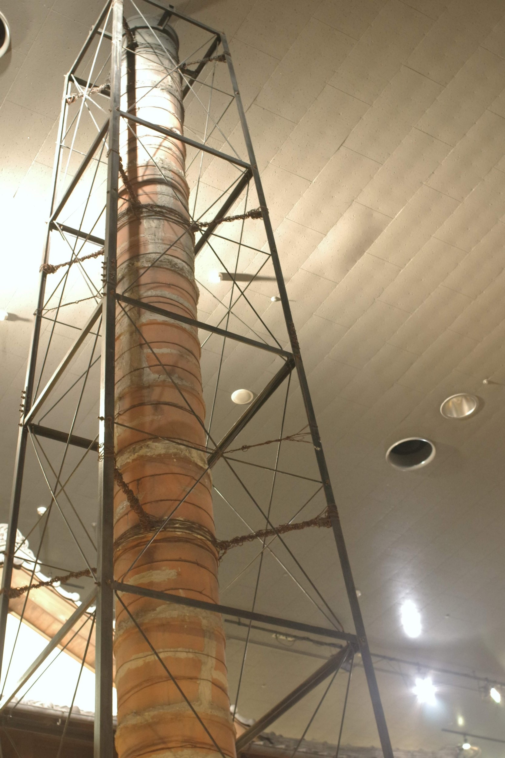 屋内とは思えないほどの窯と煙突。広角レンズがあったら煙突全部写せたかな。