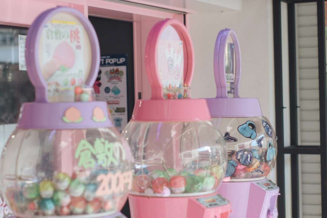 新しくできていたガチャガチャのお店は桃のガチャガチャを置いていてとっても岡山を感じた。