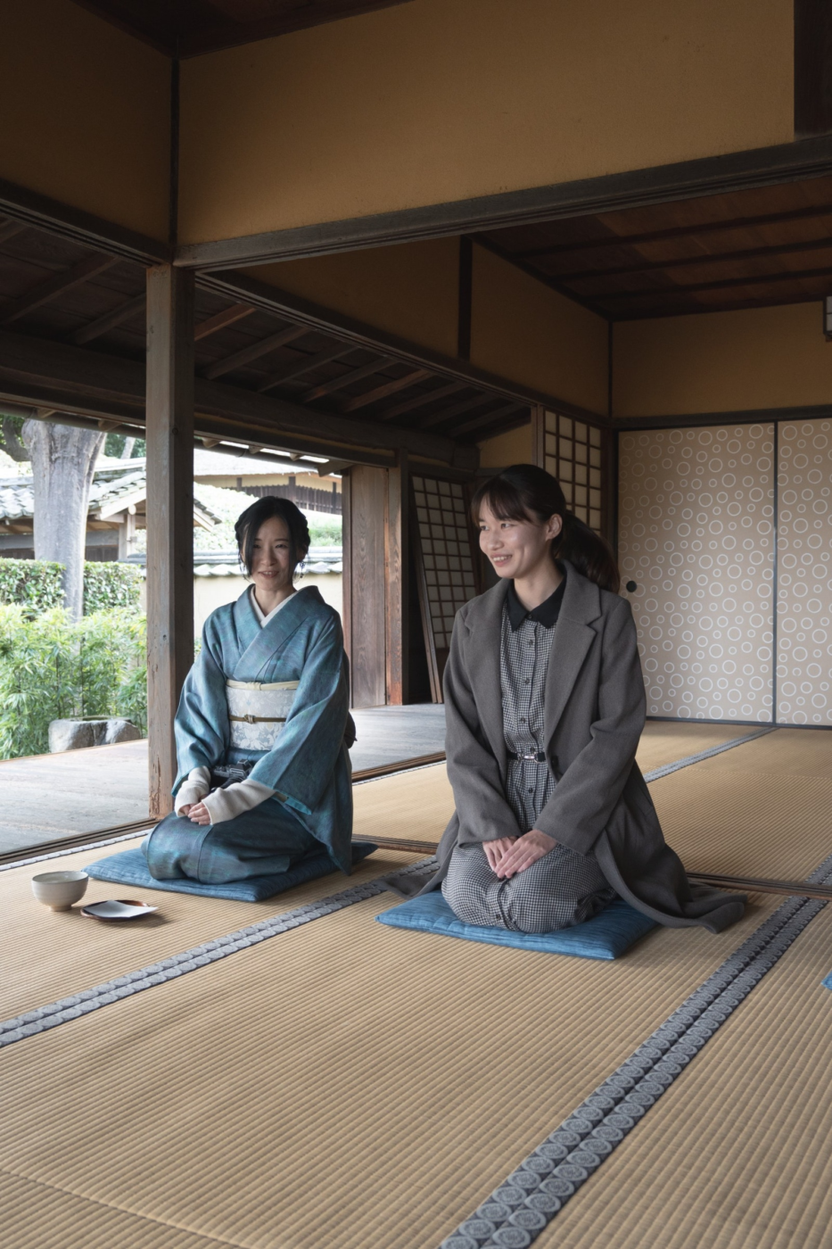 甘いお茶菓子と一緒にいただく、苦みの強いお抹茶は口の中の甘味と中和されていくのを味わった。