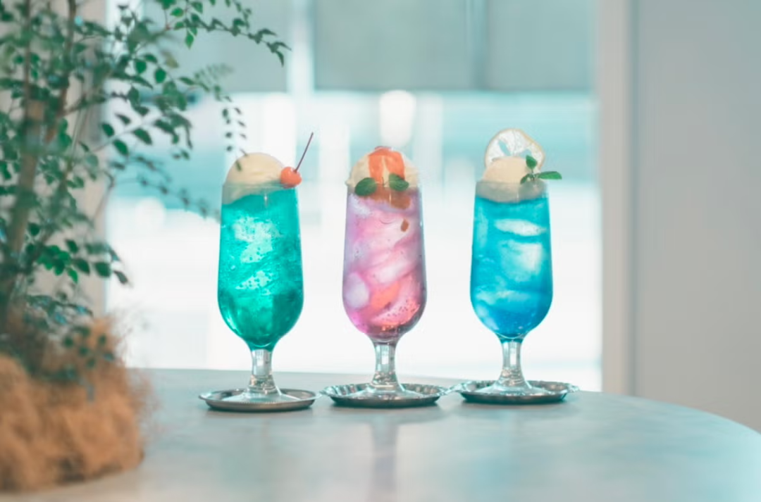 ちなみにお友達が頼んだクリームソーダとも一緒に撮影。左から順に