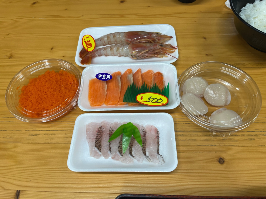 ここの市場の見どころは、もちろん新鮮な海鮮たち…!イートインスペースがあるので買ってすぐ食べられちゃいます。1番のおすすめは“マイ海鮮丼”を作れちゃうこと!海鮮を買ってイートインスペース近くでご飯を購入すれば、自分だけのマイ海鮮丼を食べることができちゃいます…!美味しすぎて何杯でもいける気持ちになります。