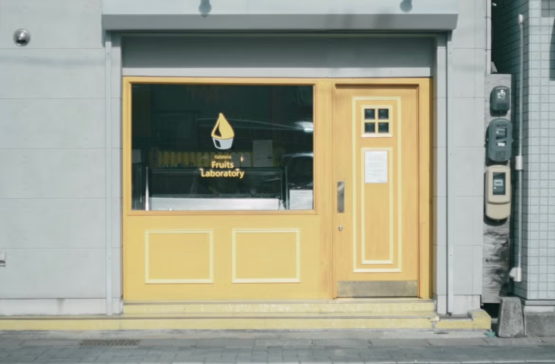 塩釜にあるジェラート屋さん。黄色の外装が特徴的でかわいい。日中は窓に描かれてるロゴが室内に影ができてまたそれもかわいい。