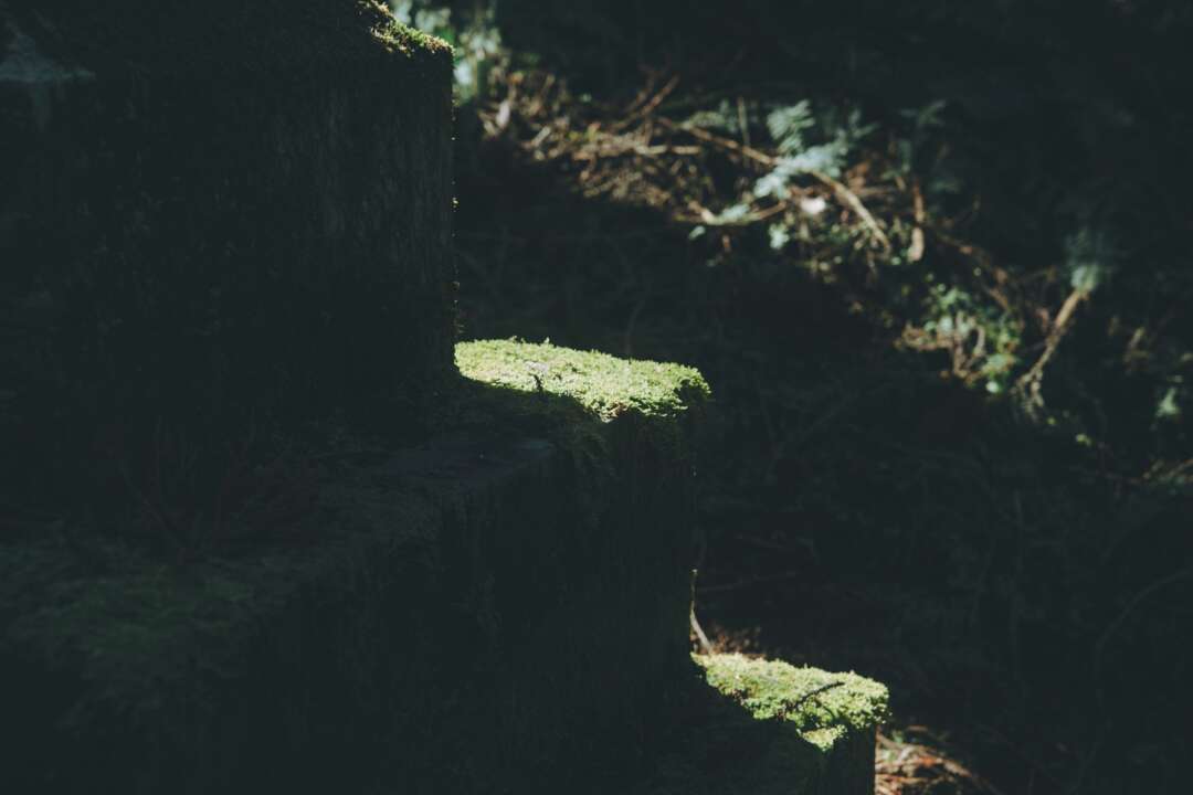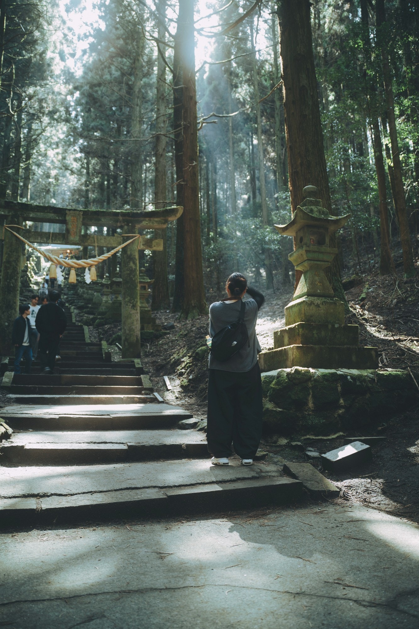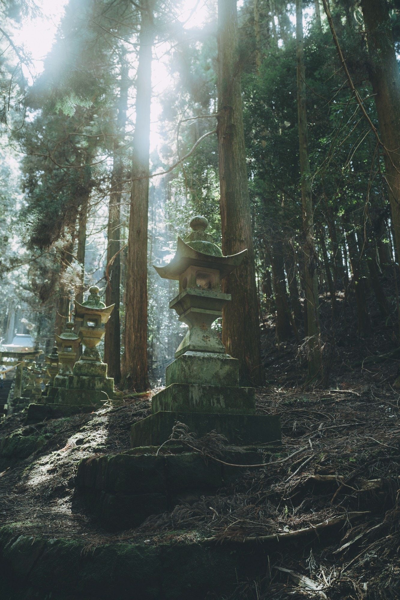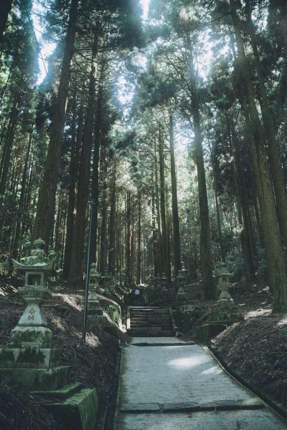 階段や石灯篭に貼り付く苔も神々しい。