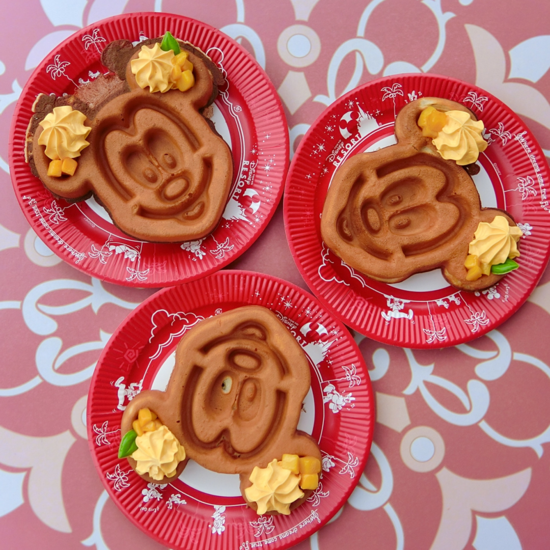 いつも激混みのミッキーワッフル。断念してたけど、待ち時間はなんと30分弱!ついに食べることができた。