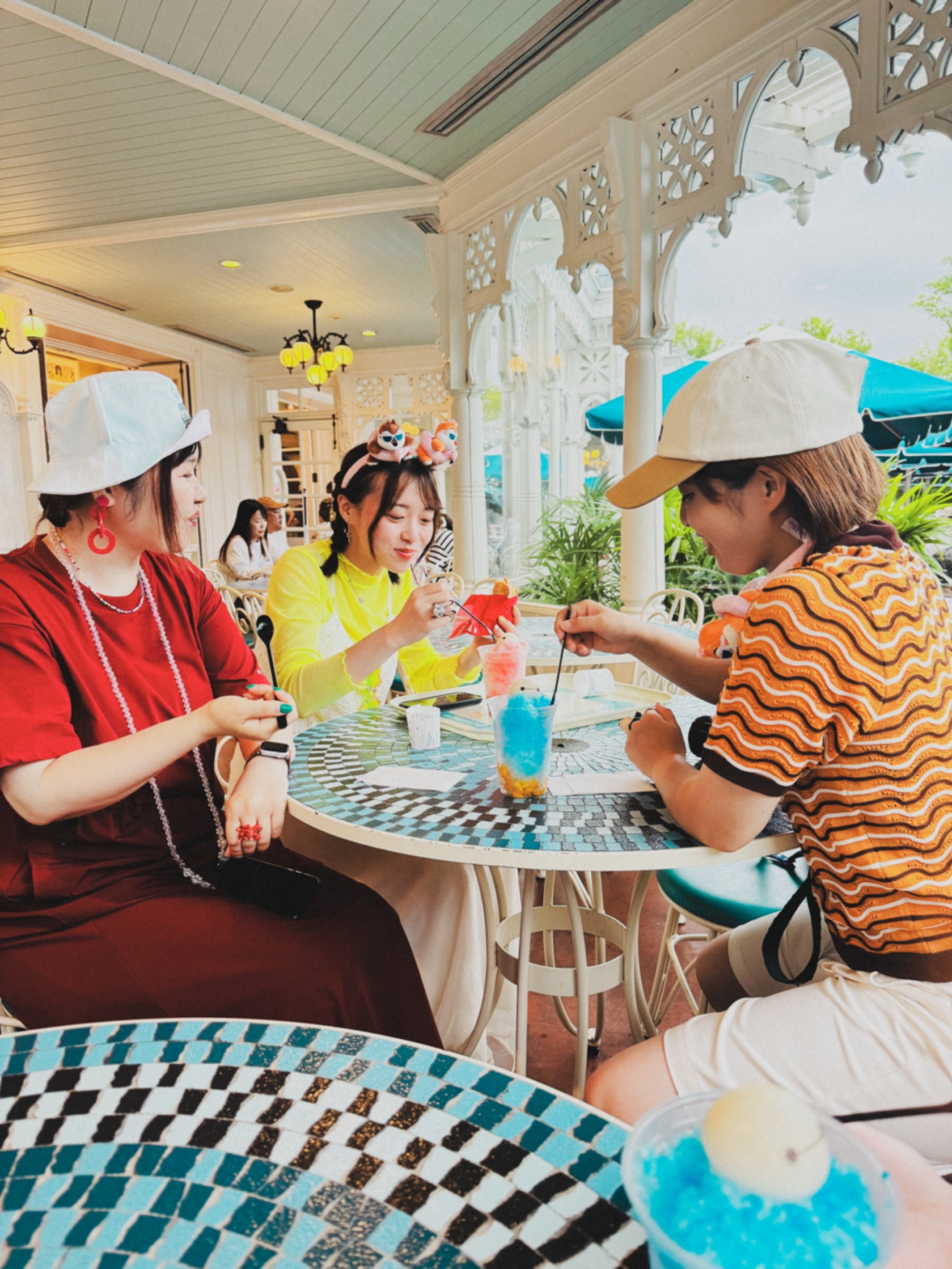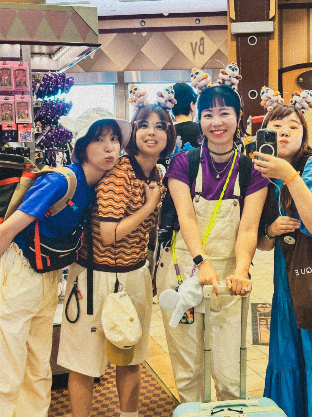 夏のパーク内は空いていることが多い。人が少ないから早朝に並ぶことなく遅め集合で良い。入園前にボンボヤージュでお揃いのグッズをじっくり選んで、ゆったりパークインなんかも良い。