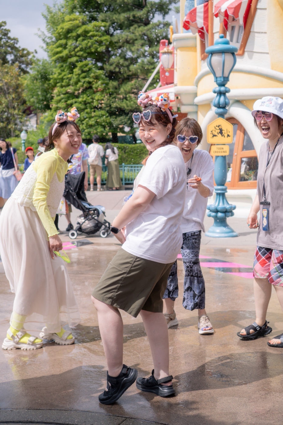 見てほしい、この笑顔。いい歳した大人女子が、水遊びで大はしゃぎした夏。ほんとに楽しかった。最高の思い出。ディズニーランドで水遊びという、夏限定の特別な思い出ができる。最高の夏の思い出ができること間違いない。