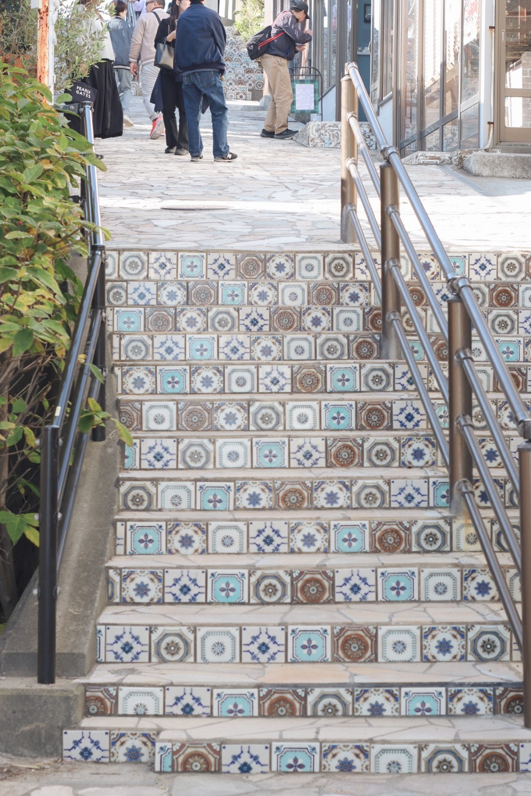 きらきら坂は階段に色とりどりのタイルが貼られている坂と、海が見える写真スポット。