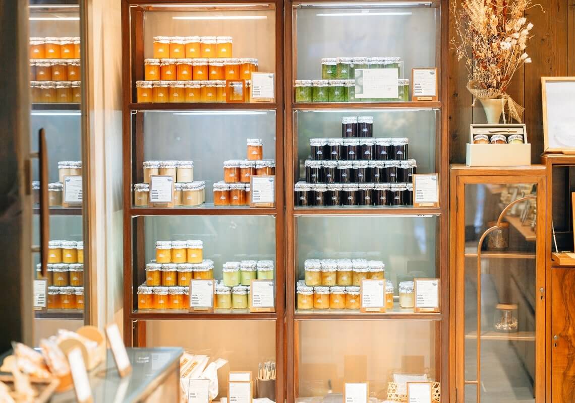 飛騨高山の古民家を移築した趣のあるお店では、お店の代表商品のコンフィチュールや焼き菓子、一枚一枚手焼きをしているどら焼きなど手作りのスイーツが買えたり、カフェや蕎麦処、揚げ物屋などがあります。大分名物の「とり天」もいただけますよ!
